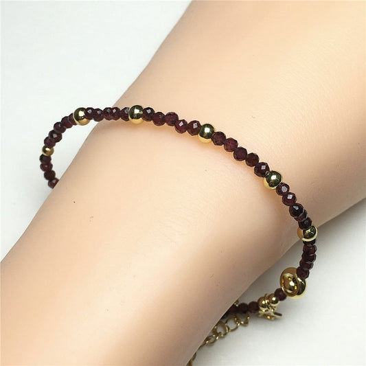 Red Garnet Gemstone Adjustable Tiny Beads Gemstone Bracelet with Love Heart Charm
