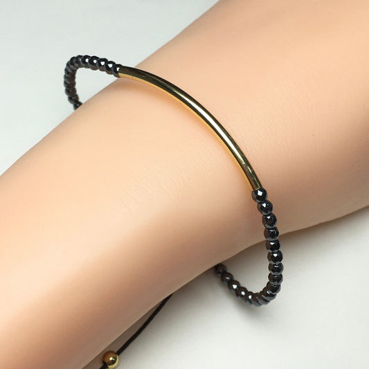 Natural Hematite Gemstone Braid Rope Macrame Adjustable Bracelet Tiny Beads Gemstone Bracelet with Gold Spacer
