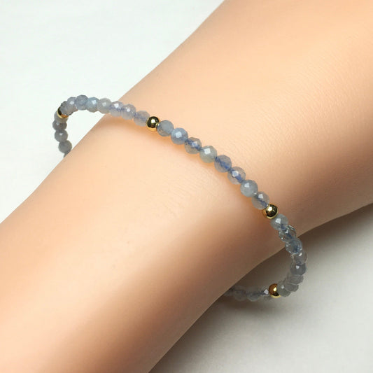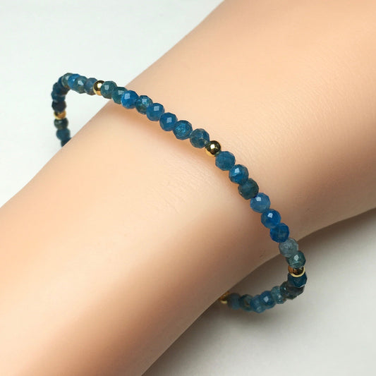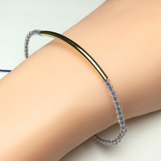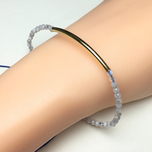 Natural Blue Apatite Gemstone Braid Rope Macrame Adjustable Bracelet Tiny Beads Gemstone Bracelet with Gold Beads Spacer