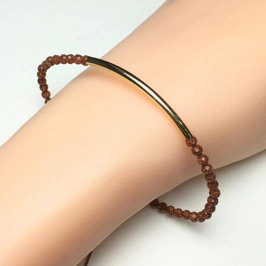 Natural Gold Sandstone Gemstone Braid Rope Macrame Adjustable Bracelet Tiny Beads Gemstone Bracelet with Gold Spacer