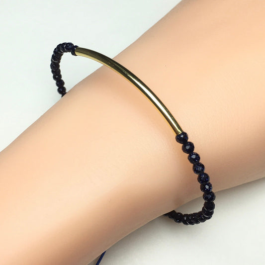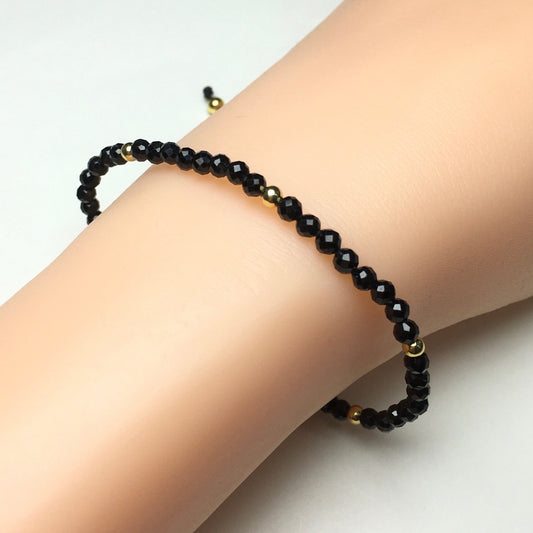 Natural Black Spinel Gemstone Braid Rope Macrame Adjustable Bracelet Tiny Beads Gemstone Bracelet with Gold Beads Spacer