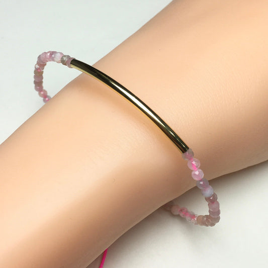 Natural Morganite Gemstone Braid Rope Macrame Adjustable Bracelet Tiny Beads Gemstone Bracelet with Gold Spacer