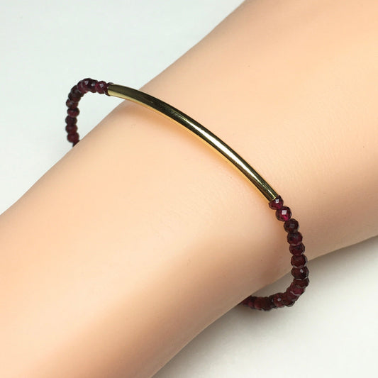 Natural Garnet Gemstone Braid Rope Macrame Adjustable Bracelet Tiny Beads Gemstone Bracelet with Gold Spacer