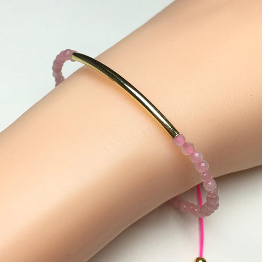 Natural Pink Rose Quartz Gemstone Braid Rope Macrame Adjustable Bracelet Tiny Beads Gemstone Bracelet with Gold Spacer