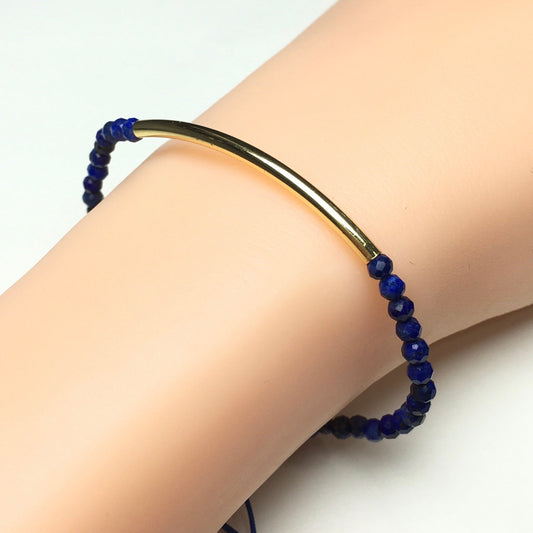 Natural Lapis Lazuli Gemstone Braid Rope Macrame Adjustable Bracelet Tiny Beads Gemstone Bracelet with Gold Spacer