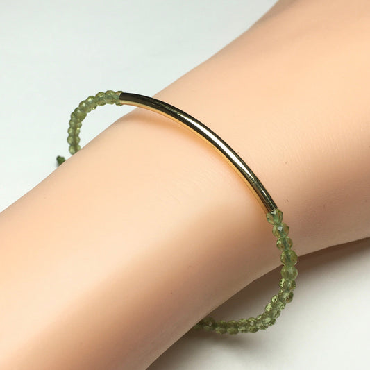 Natural Peridot Gemstone Braid Rope Macrame Adjustable Bracelet Tiny Beads Gemstone Bracelet with Gold Spacer