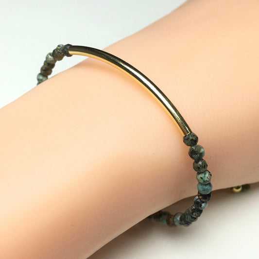 Natural African Turquoise Gemstone Braid Rope Macrame Adjustable Bracelet Tiny Beads Gemstone Bracelet with Gold Spacer