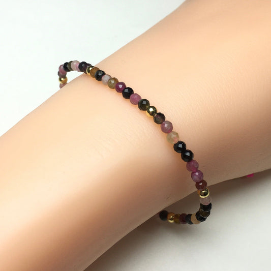Natural Tourmaline Gemstone Braid Rope Macrame Adjustable Bracelet Tiny Beads Gemstone Bracelet with Gold Beads Spacer