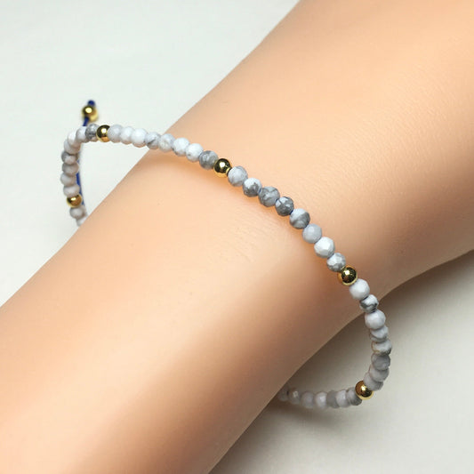 Natural Howlite Gemstone Braid Rope Macrame Adjustable Bracelet Tiny Beads Gemstone Bracelet with Gold Beads Spacer