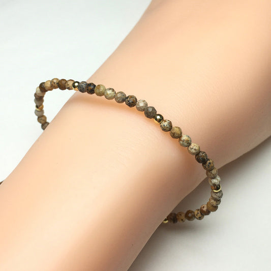Natural Picture Jasper Gemstone Braid Rope Macrame Adjustable Bracelet Tiny Beads Gemstone Bracelet with Gold Beads Spacer