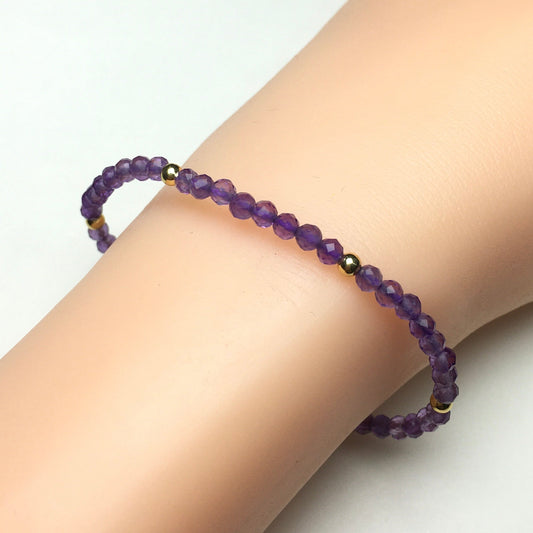 Natural Purple Amethyst Gemstone Braid Rope Macrame Adjustable Bracelet Tiny Beads Gemstone Bracelet with Gold Beads Spacer