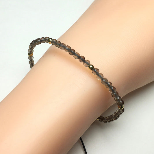 Natural Smoky Quartz Gemstone Braid Rope Macrame Adjustable Bracelet Tiny Beads Gemstone Bracelet with Gold Beads Spacer