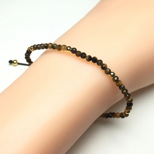 Natural Tiger Eyes Gemstone Braid Rope Macrame Adjustable Bracelet Tiny Beads Gemstone Bracelet with Gold Beads Spacer