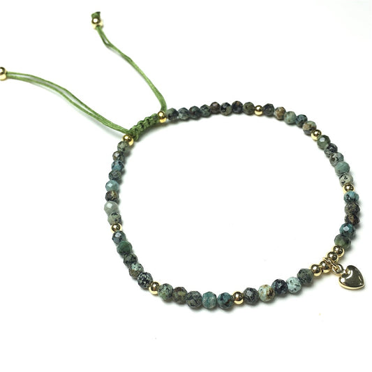 African Turquoise Gemstone Braid Rope Macrame Adjustable Bracelet Tiny Beads Gemstone Bracelet with Love Heart Charm