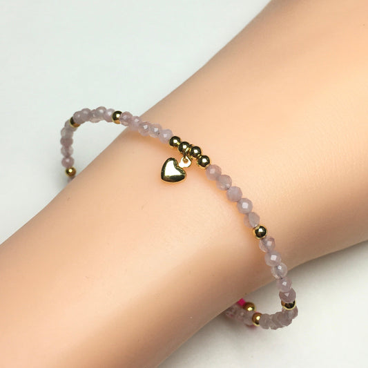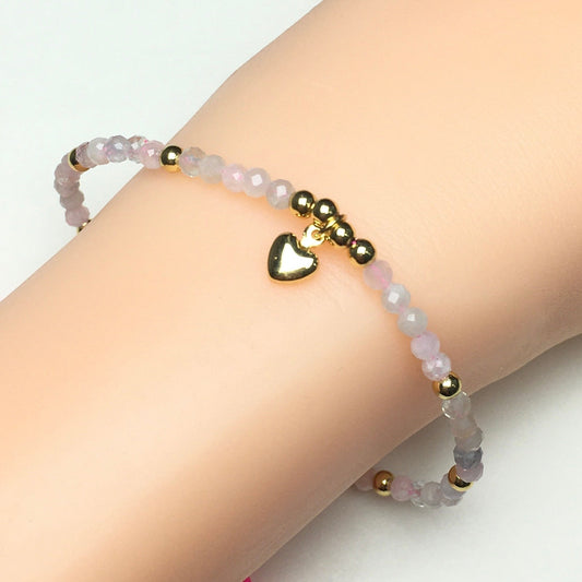 Morganite Gemstone Braid Rope Macrame Adjustable Bracelet Tiny Beads Gemstone Bracelet with Love Heart Charm