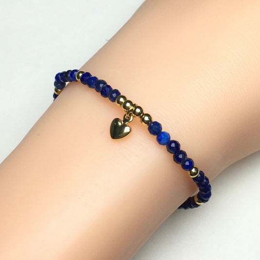 Lapis Gemstone Braid Rope Macrame Adjustable Bracelet Tiny Beads Gemstone Bracelet with Love Heart Charm