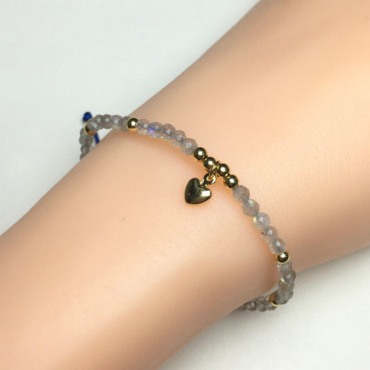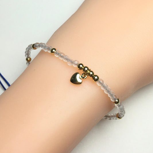 Labradorite Gemstone Braid Rope Macrame Adjustable Bracelet Tiny Beads Gemstone Bracelet with Love Heart Charm