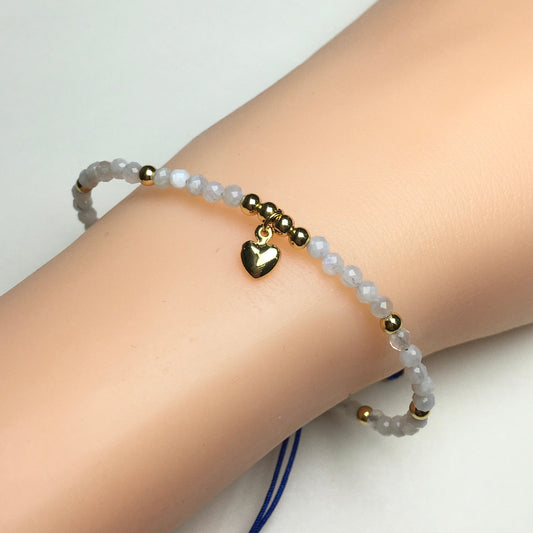 Moonstone Gemstone Braid Rope Macrame Adjustable Bracelet Tiny Beads Gemstone Bracelet with Love Heart Charm