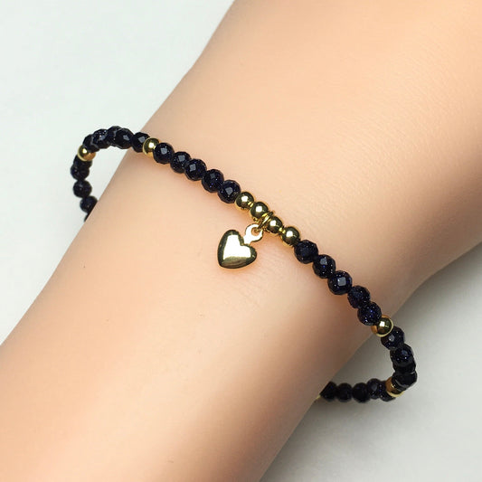 Blue Sandstone Gemstone Braid Rope Macrame Adjustable Bracelet Tiny Beads Gemstone Bracelet with Love Heart Charm