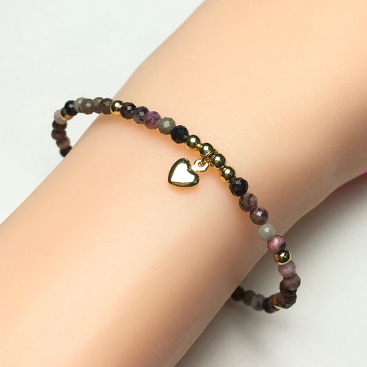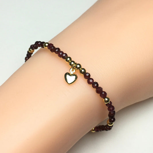 Garnet Gemstone Braid Rope Macrame Adjustable Bracelet Tiny Beads Gemstone Bracelet with Love Heart Charm