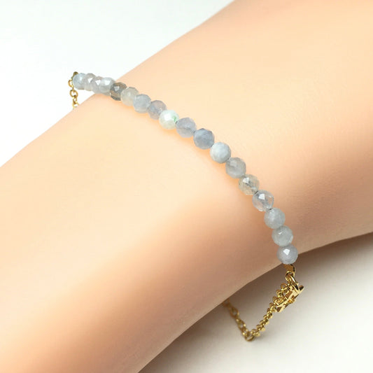 Aquamarine Gemstone Adjustable Bracelet Tiny Beads Gemstone Gold Plated Chain Linked Bracelet for Women