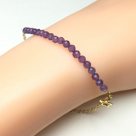 Purple Amethyst Gemstone Adjustable Bracelet Tiny Beads Gemstone Gold Plated Chain Linked Bracelet for Women