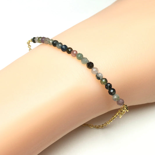 Tourmaline Gemstone Adjustable Bracelet Tiny Beads Gemstone Gold Plated Chain Linked Bracelet for Women