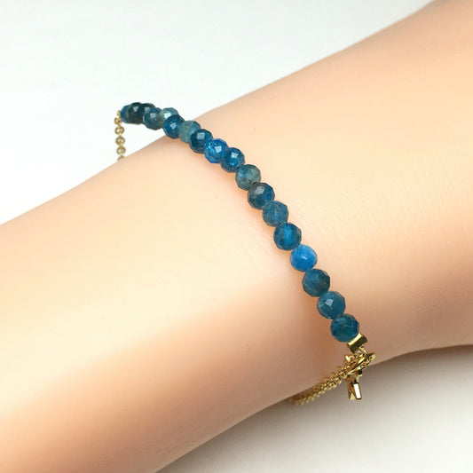 Blue Apatite Gemstone Adjustable Bracelet Tiny Beads Gemstone Gold Plated Chain Linked Bracelet for Women