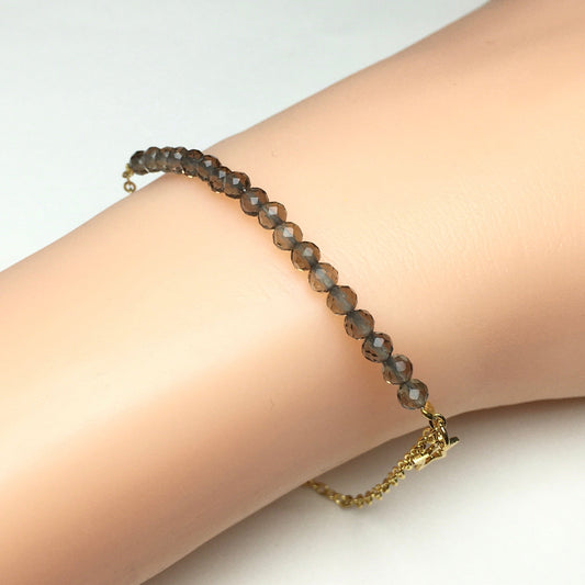 Smoky Quartz Gemstone Adjustable Bracelet Tiny Beads Gemstone Gold Plated Chain Linked Bracelet for Women