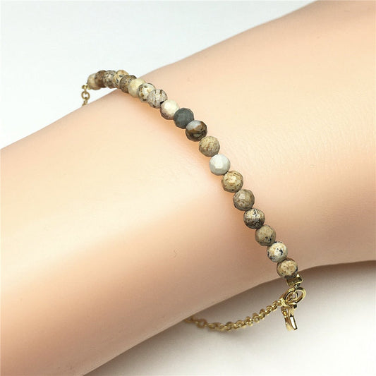 Picture Jasper Gemstone Adjustable Bracelet Tiny Beads Gemstone Gold Plated Chain Linked Bracelet for Women