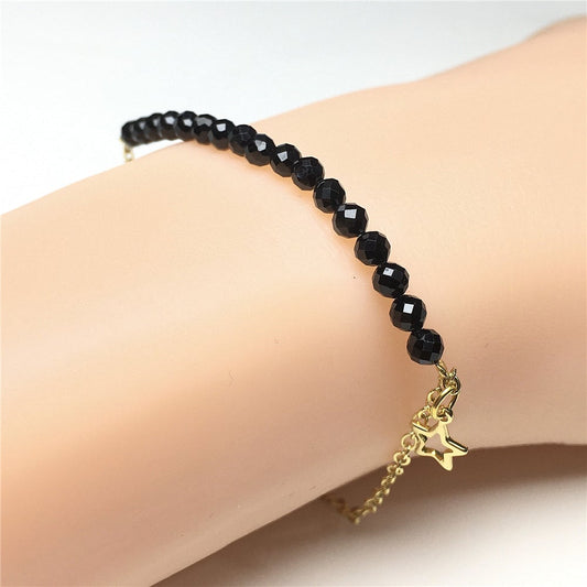 Black Spinel Gemstone Adjustable Bracelet Tiny Beads Gemstone Gold Plated Chain Linked Bracelet for Women