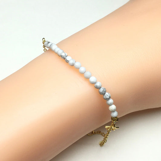 Howlite Gemstone Adjustable Bracelet Tiny Beads Gemstone Gold Plated Chain Linked Bracelet for Women