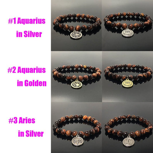 Constellation Zodiac Sign Gemstone Bracelet Celestial Astrology Constellation Jewelry by Red Tiger's Eye Stone Beads
