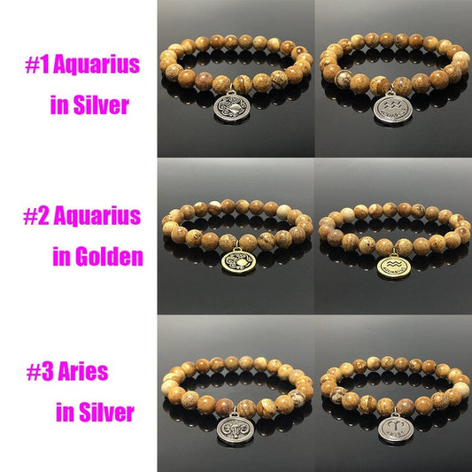 Picture Jasper Beads Zodiac Bracelet Horoscope HD Charm Stretchy Gemstone Bracelet Celestial Astrology Constellation Jewelry Birthstone Gift