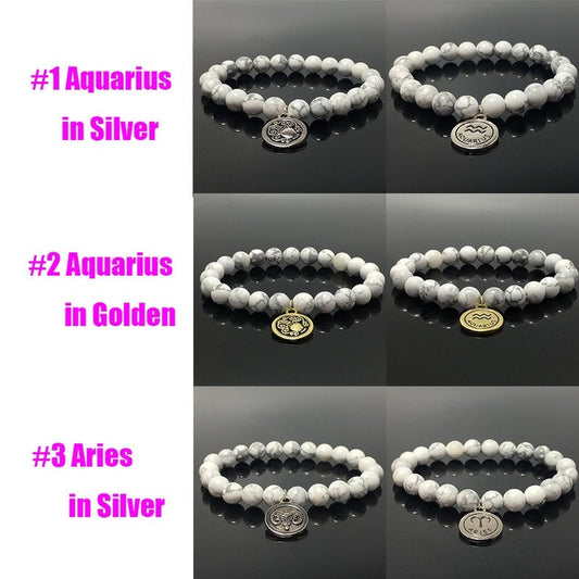 8mm Howlite Beads Zodiac Bracelet Horoscope HD Charm Stretchy Gemstone Bracelet Celestial Astrology Constellation Jewelry