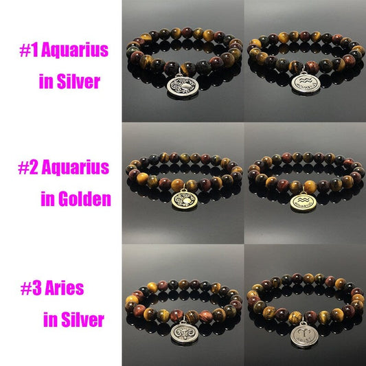 Constellation Zodiac Sign Gemstone Bracelet Celestial Astrology Constellation Jewelry by Colorful Tiger's Eye Beads Charms