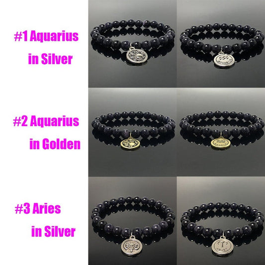 8mm Blue Sandstone Bead Zodiac Bracelet Horoscope Charm Stretchy Gemstone Bracelet Celestial Astrology Constellation Jewelry Birthstone Gift