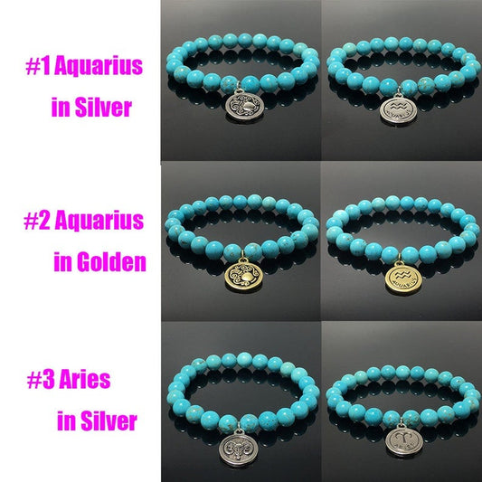 8mm Blue Turquoise Bead Zodiac Bracelet Horoscope Charm Stretchy Gemstone Bracelet Celestial Astrology Constellation Jewelry Birthstone Gift