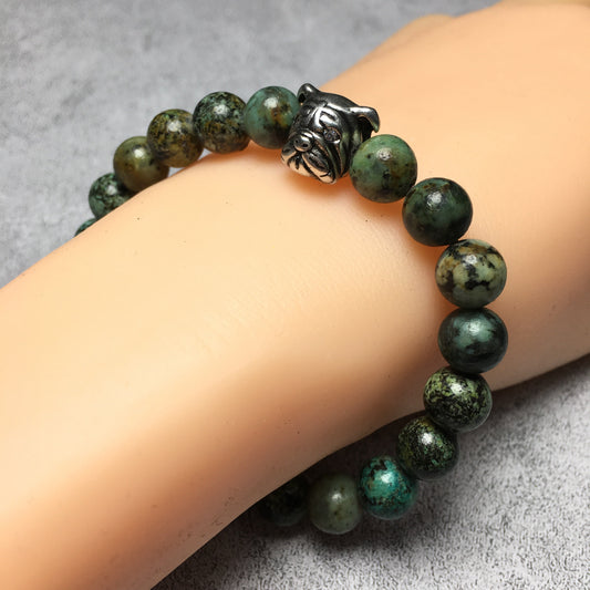 African Turqoiuse Gemstone Beaded Bracelet Adjustable Bracelet Bulldog Style