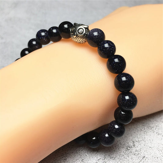 Natural Blue Sandstone Gemstone Handmade Beaded Bracelet Adjustable Bracelet Owl Design