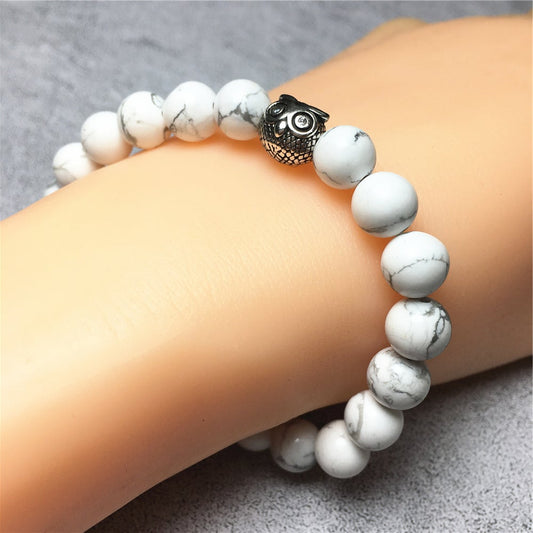 Natural Howlite Gemstone Handmade Beaded Bracelet Adjustable Bracelet Owl Design