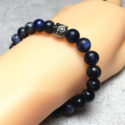 Natural Sodelite Gemstone Handmade Beaded Bracelet Adjustable Bracelet Owl Design
