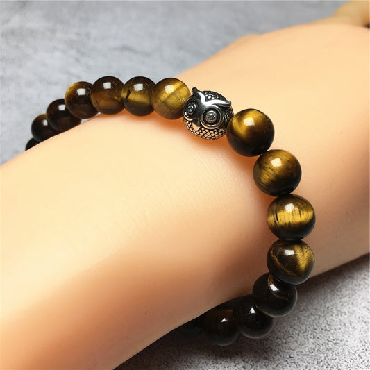 Natural Tigereye Gemstone Handmade Beaded Adjustable Bracelet Owl Design