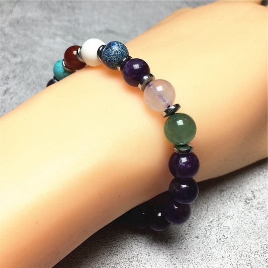 Genuine 7 Chakra Healing Gemstone With Purple Amethyst Beaded Bracelet