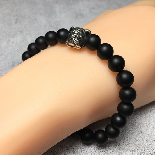 Matte Onyx Gemstone Bulldog Beaded Bracelet Design
