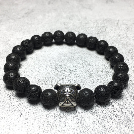 Lava Stone Gemstone Beaded Bracelet Adjustable Bracelet Bulldog Design
