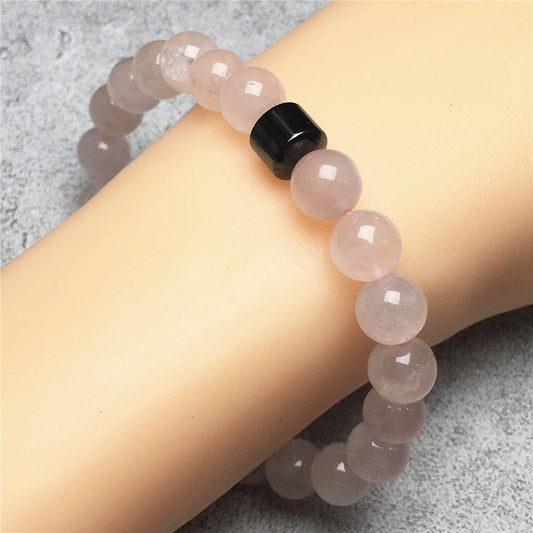Rose Quartz Gemstone Elastic Stretch Magnet Hematite Bracelet