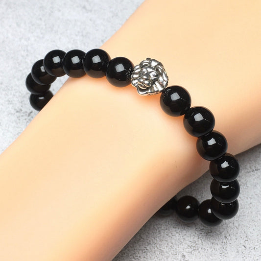 Black Only Beaded Adjustable Gemstone Bracelet Lion Style