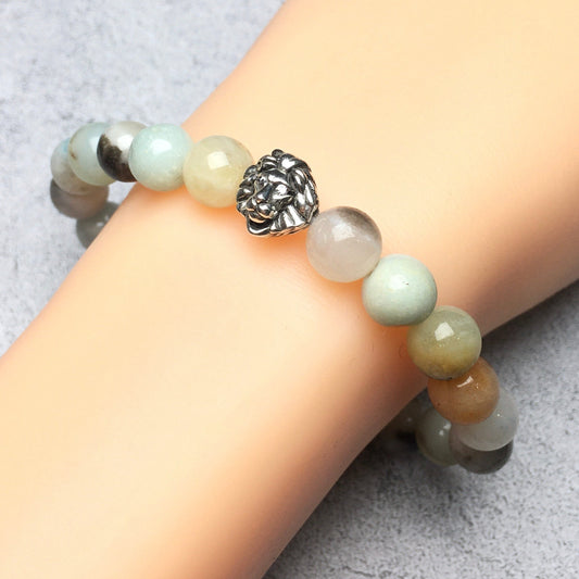 Amazonite Beaded Adjustable Gemstone Bracelet Lion Style