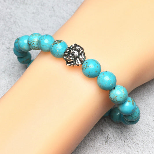 Blue Turqouise Beaded Adjustable Gemstone Bracelet Lion Style